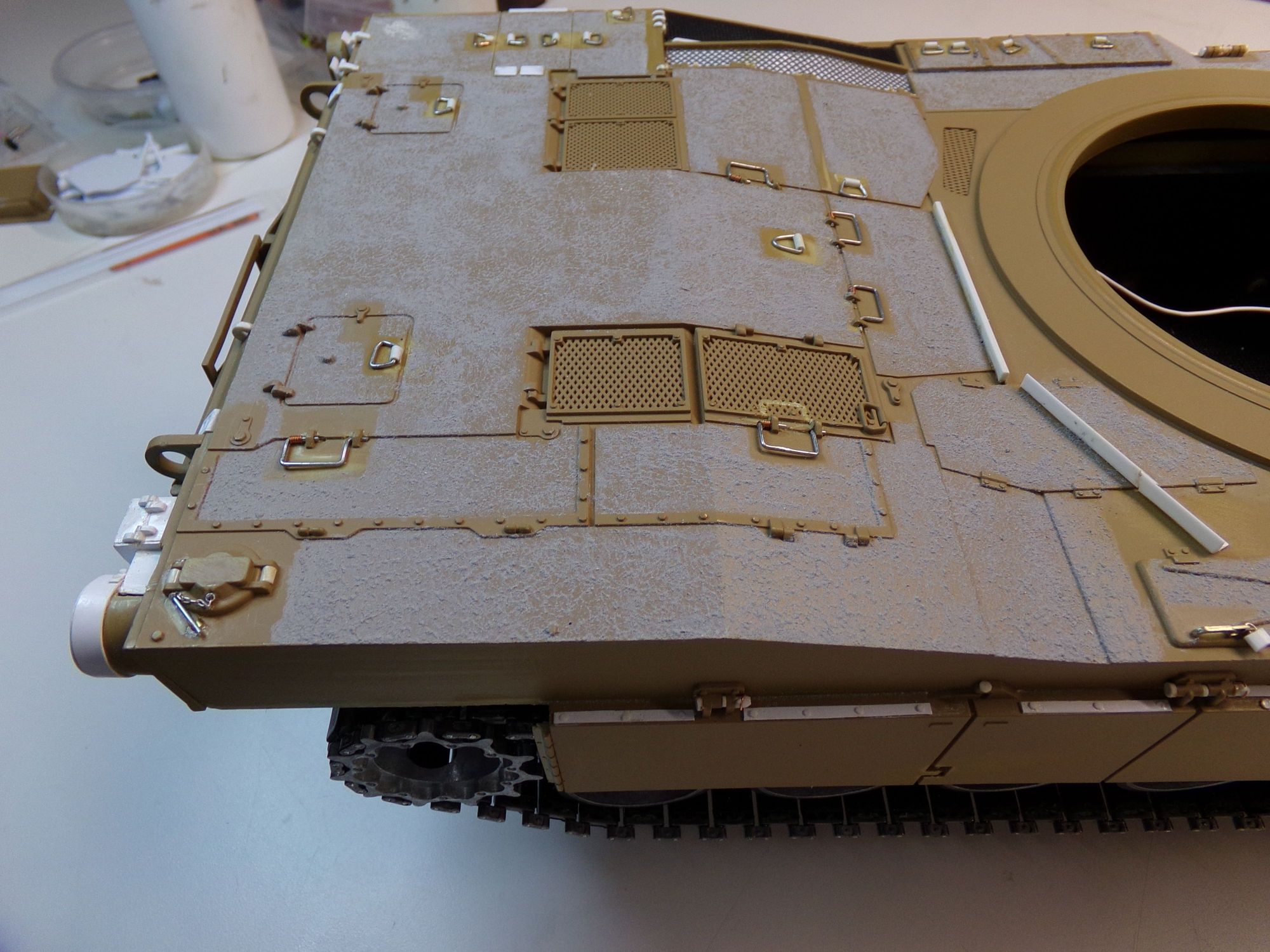 Rear engine deck rework showing reworked fuel door. You can see the squarish handles also have the simulated spring detail added.