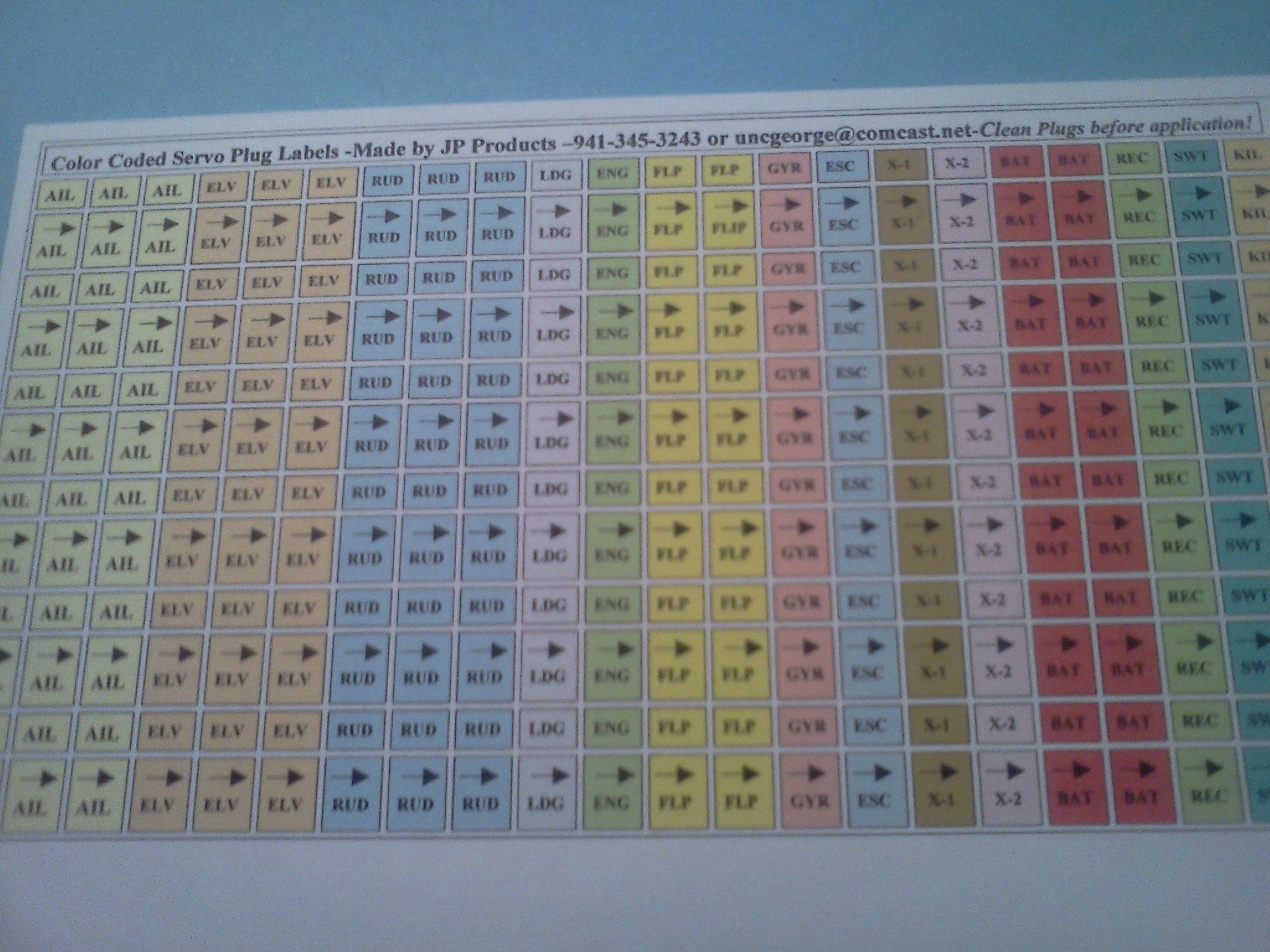 One male and one female labels for 6 planes that are marked for you and you can use only colors to fine the right plug the first time. A time saver.