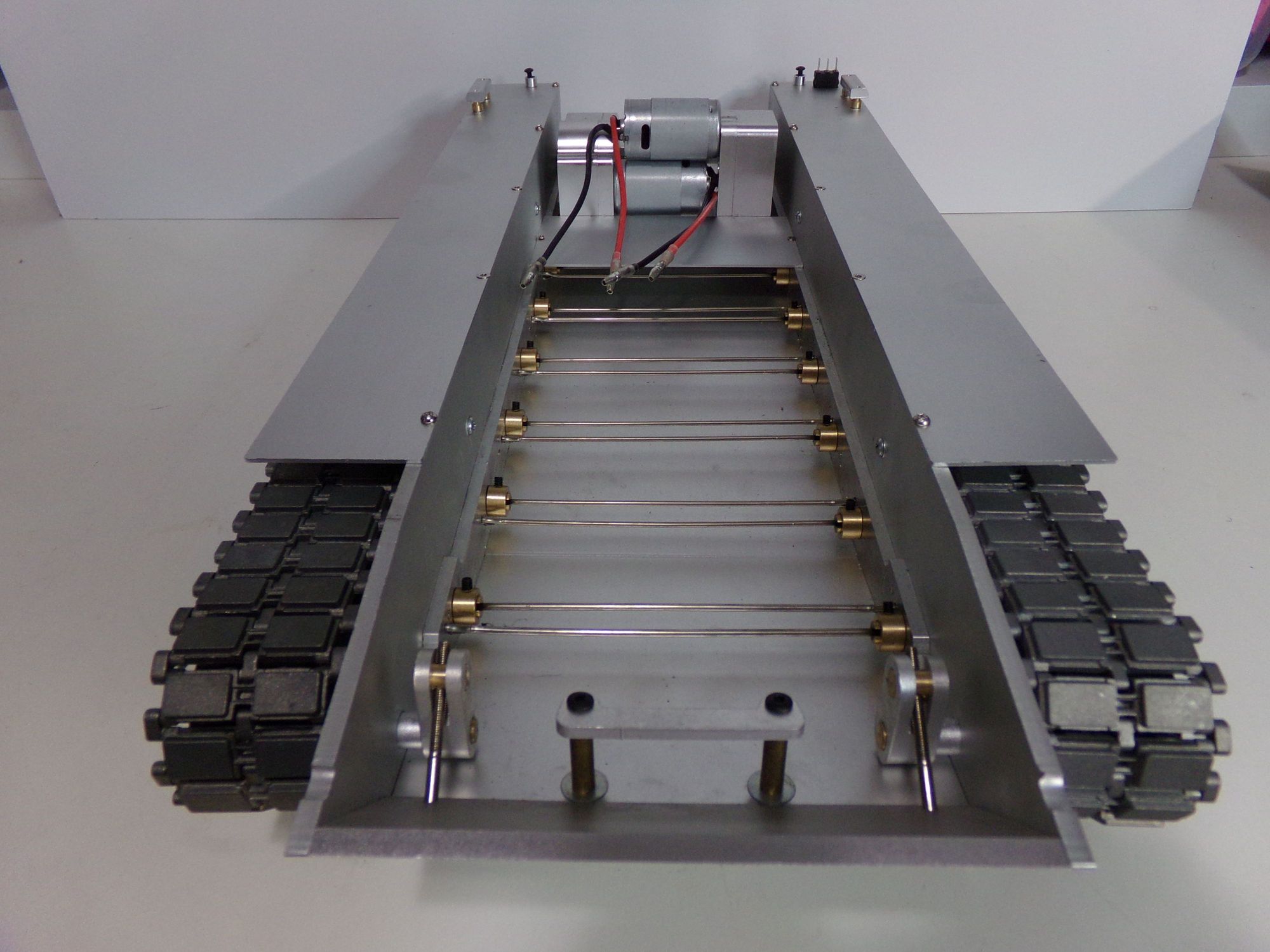 Note the lip on both sides of the tank making it easy to create a shelf above the torsion bars to hold all the electronics.