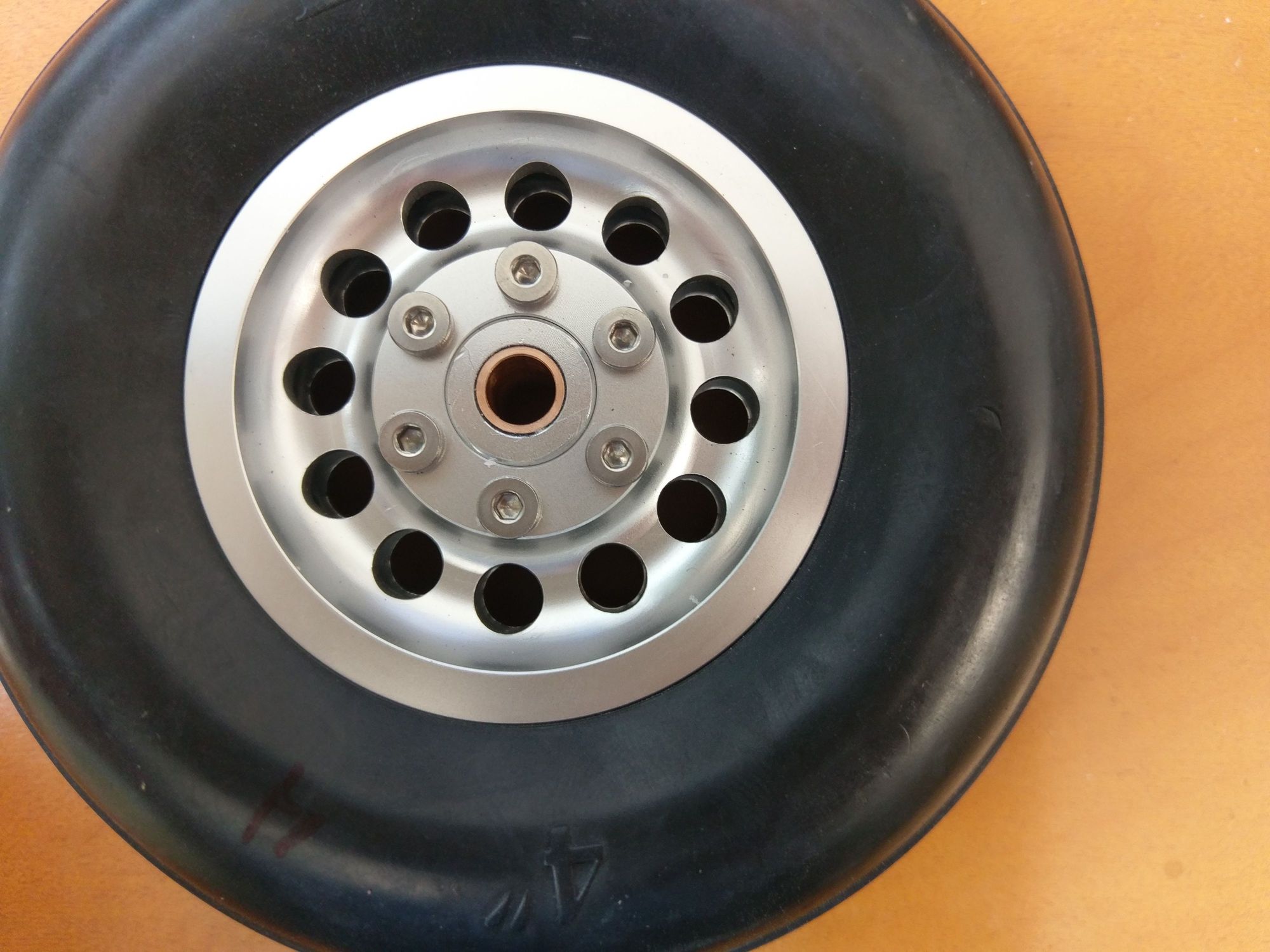 Assembled wheel with new bronze bushing reamed to 6mm