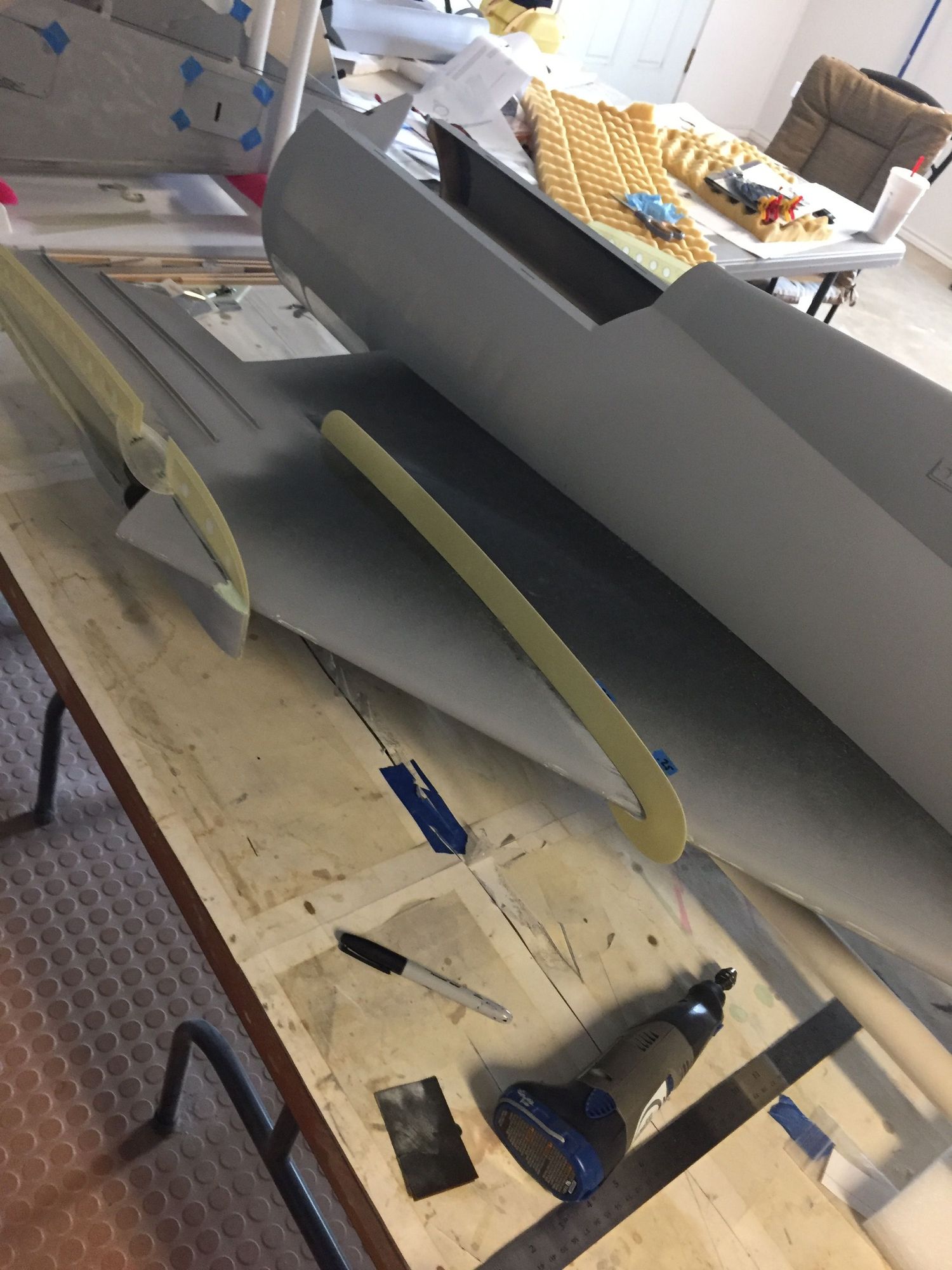 Then, installation of the midboard fence, which is mostly on top of the wing, and slightly wraps around the wing LE.