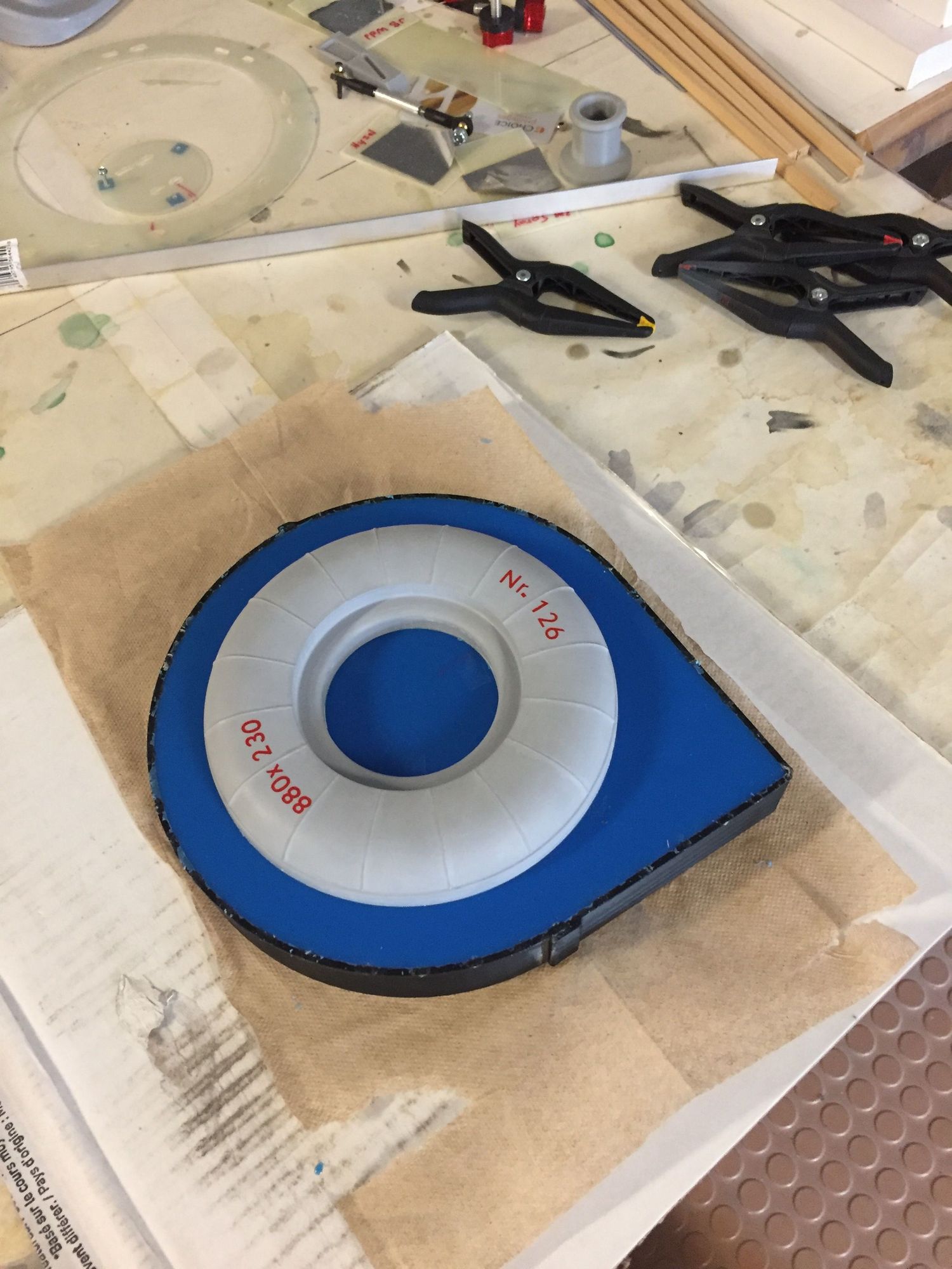 First half has been poured, and parting plane removed. Need to spray mold release, then pour this last side...
