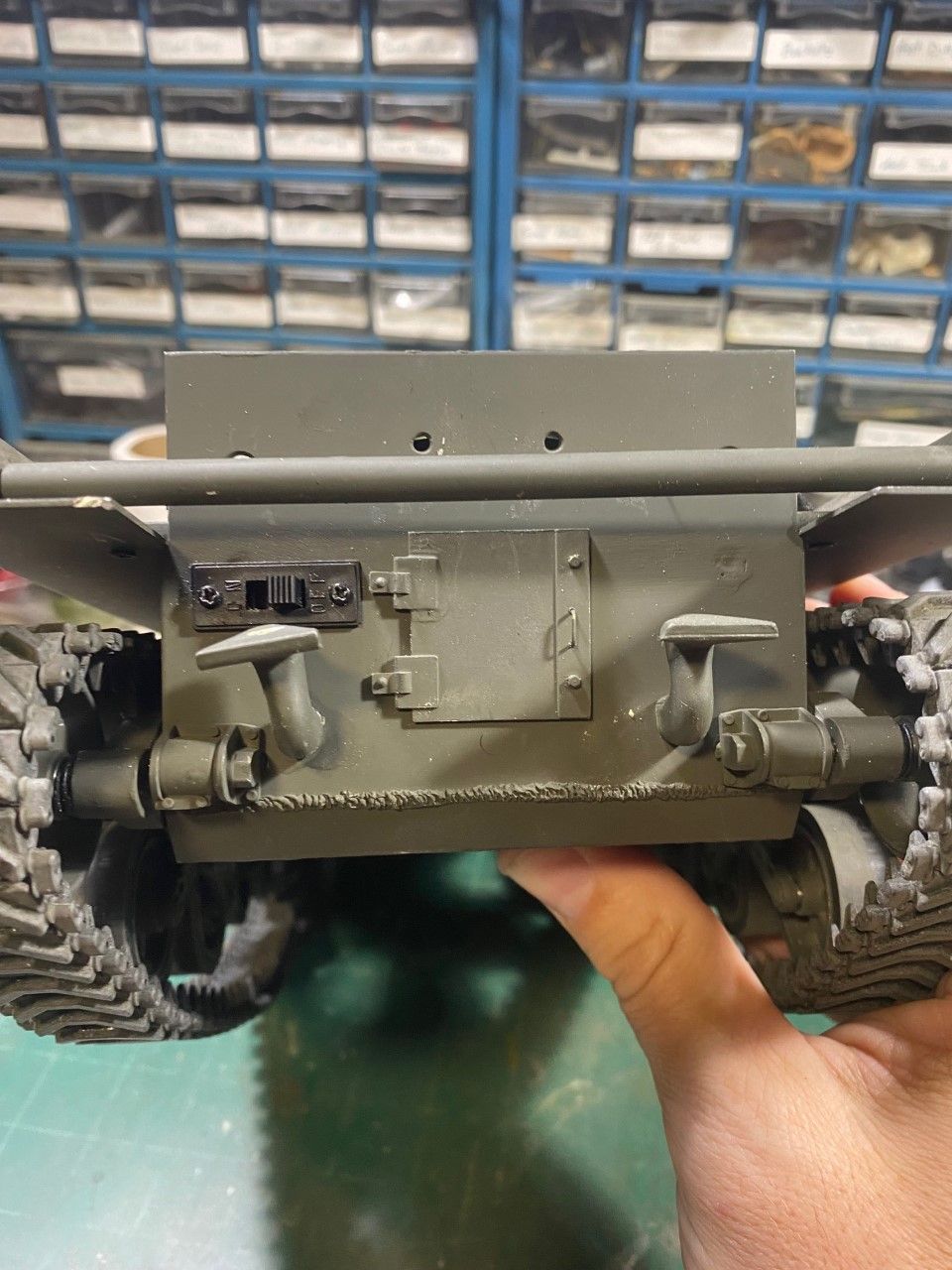 On/Off switch mounted in the rear, it bugs me about the exhaust tilting, but its too late to fix as it is screwed from the back and also glued.