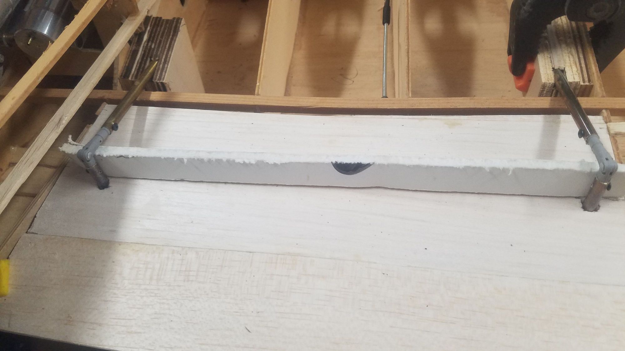 Temporary gauge to set correct height. Tomorrow will use Aeropoxy on hinge section in the flap after shaping flap to miss the fuselage and inner section.