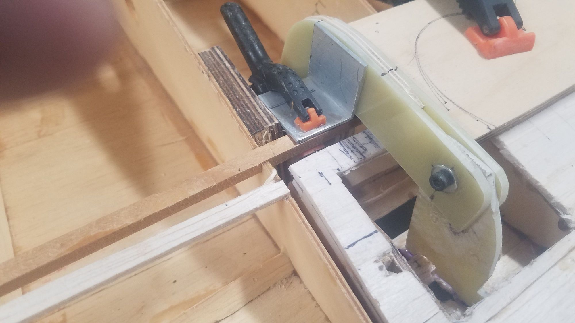 Better photo of small square. A 1-inch angle is actually square. CA used to temporarily hold the hinges for a test. Cut the flap loose and it all works with no binding.