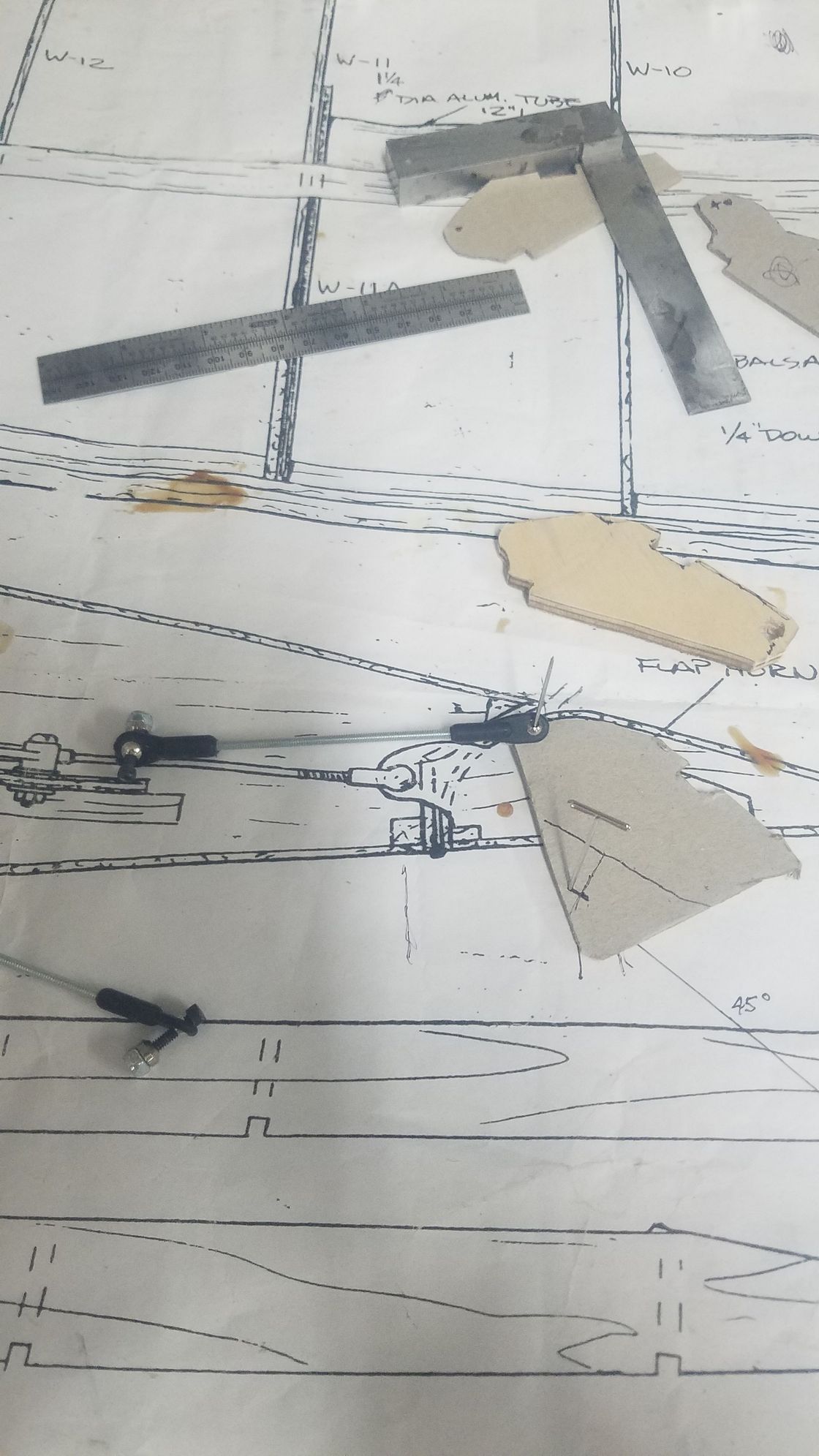 Flap deployed to 45 degrees. Looks pretty good, will find out when servo is installed. Looks like it will take a longer servo arm to get full deployment.
