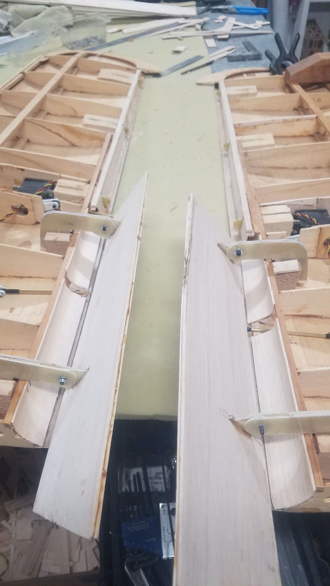 View of flap side of the rear of the wing closed up.