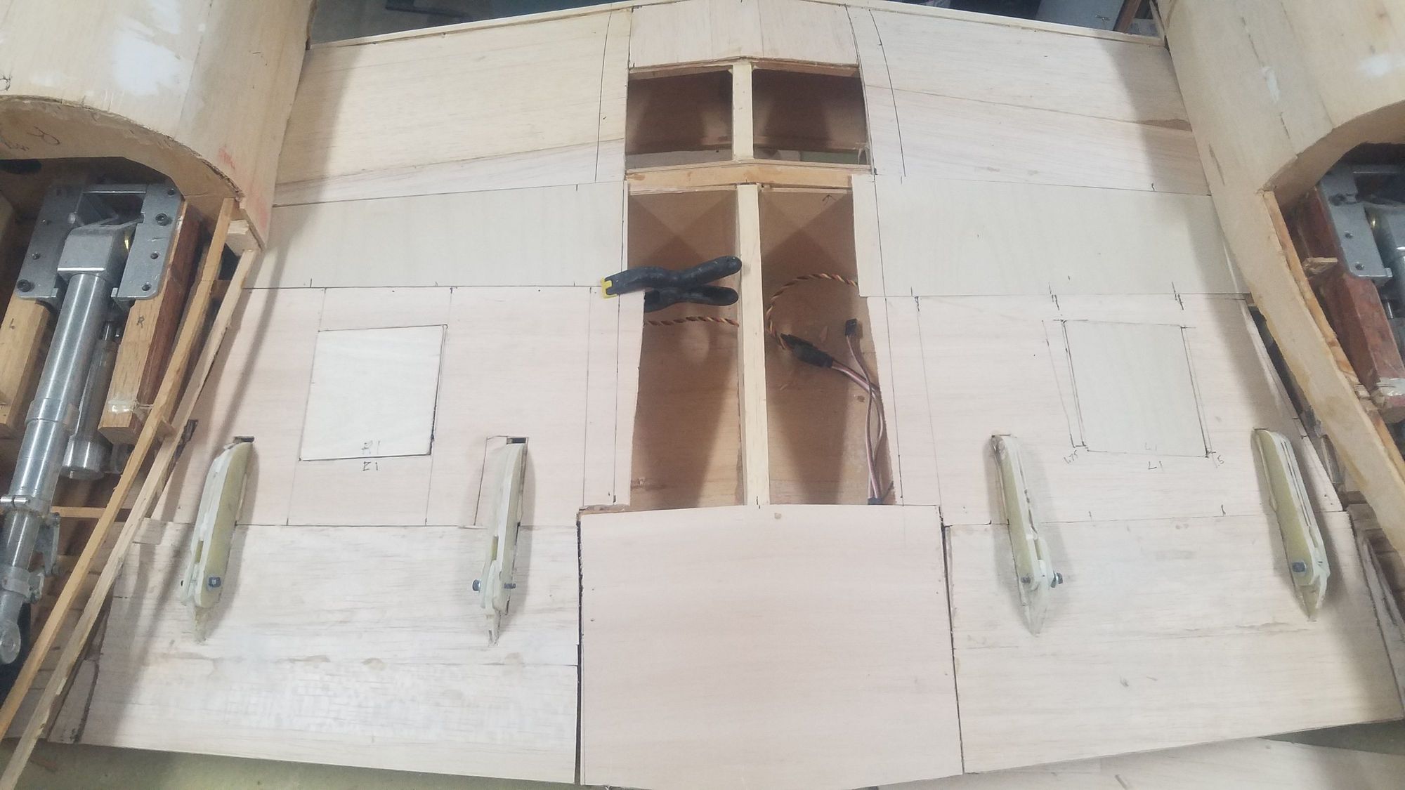 Bottom of center section completed, just need to drill screw holes in the access doors and screw them down. Bottom left open for transition of wire and air into the fuselage.