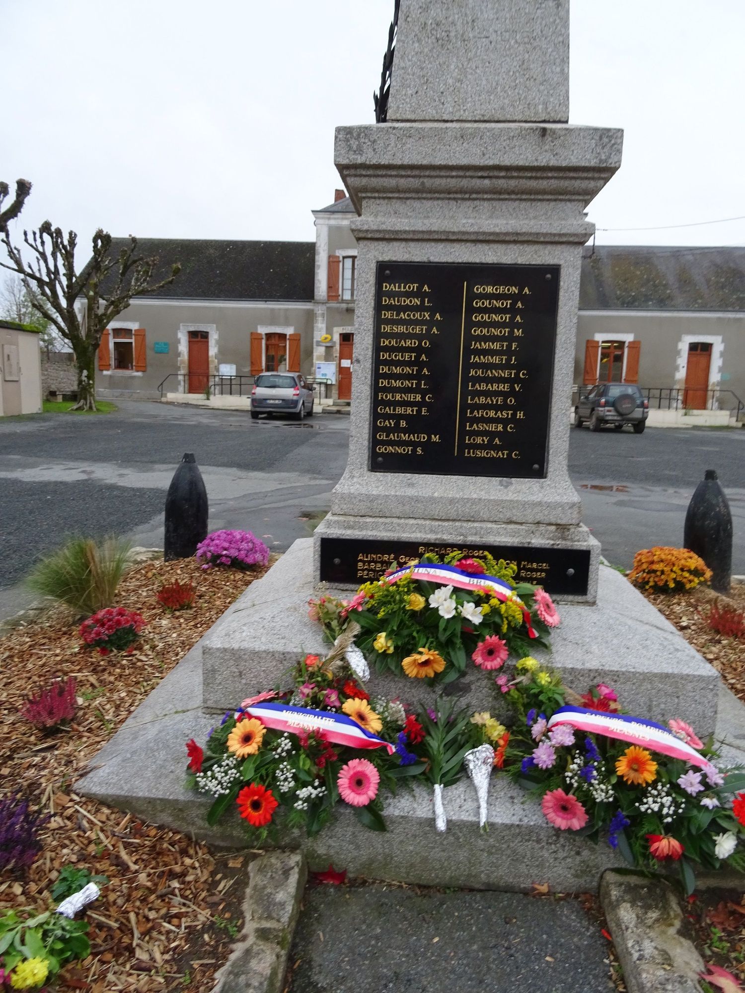 War Memorial Measnes France taken several days after 11th November. Wreaths from the Commune, the Fire Brigade and the British Community. The poesies are from primary school children.