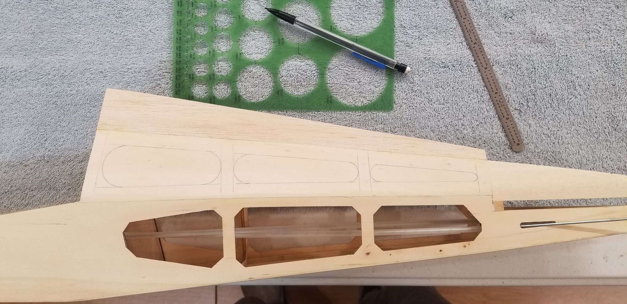 Boundary lines laid out ahead of cutouts to remove material weight -