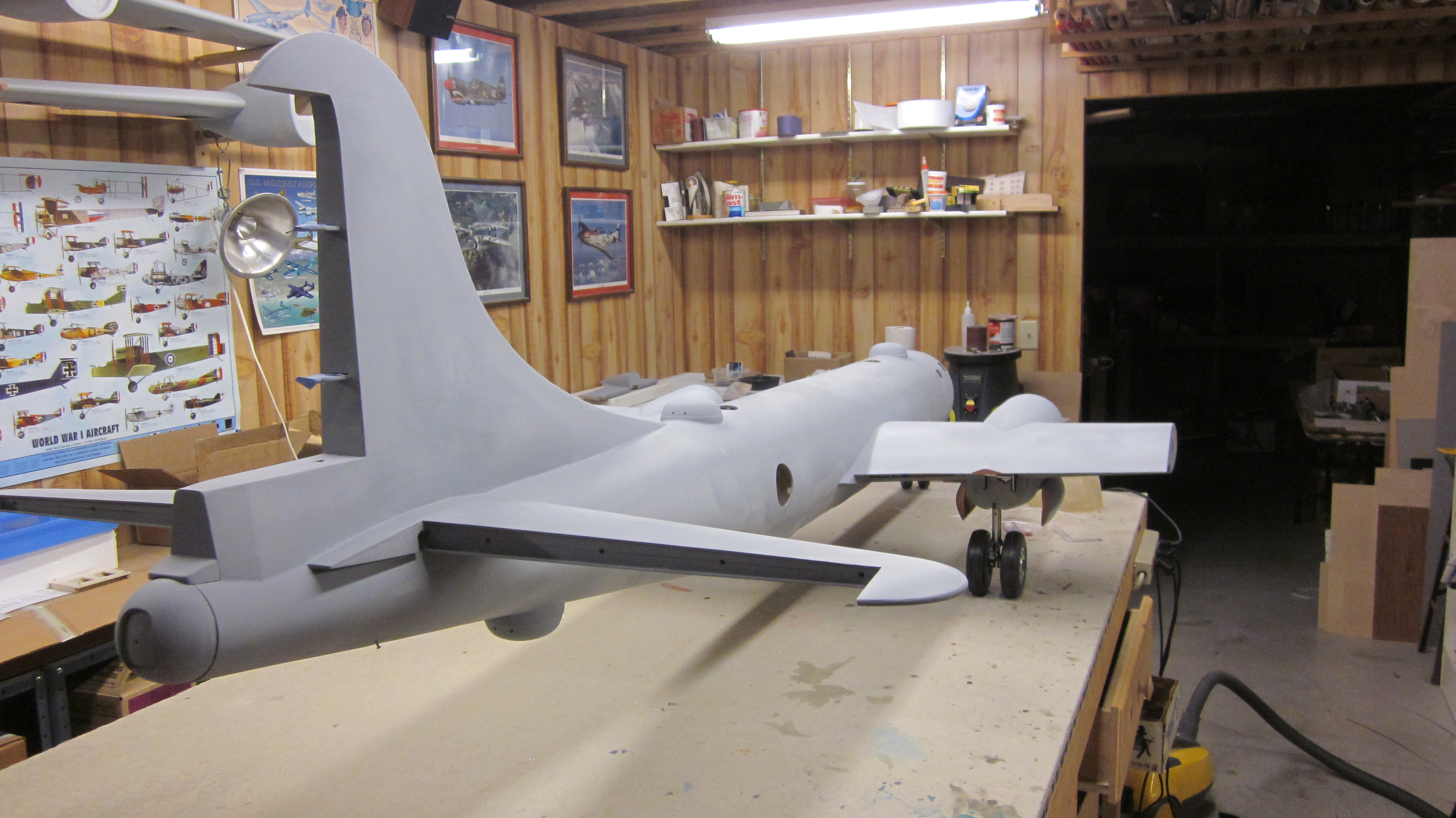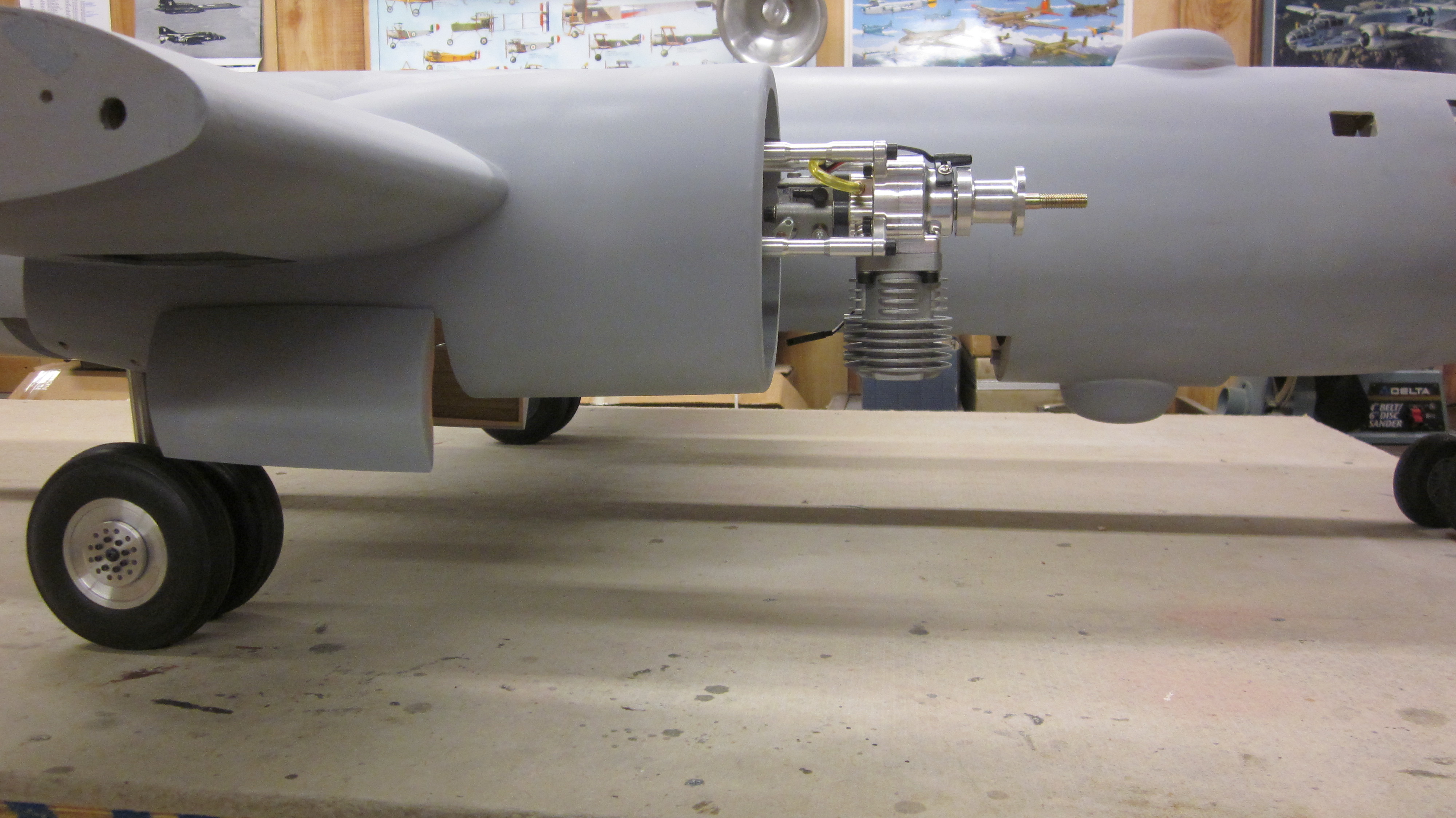I have a very similar setup to yours on my B-25. I have Century Jet retracts with Robart wheels and brakes. They work great together. I set up one battery in the fuse that runs out to a charge/switch on the side of the nacelle and then to the ignition. That saved plenty of room for tank and ignition and allowed for one very large battery. You could use 2 batteries linking your inboard and outboard engines together. That way you only have to charge 2 batteries and they can be charge from either side of the plane. With your removeable wing/engine setup you could put both switches on the inboard nacelle. Just a thought.