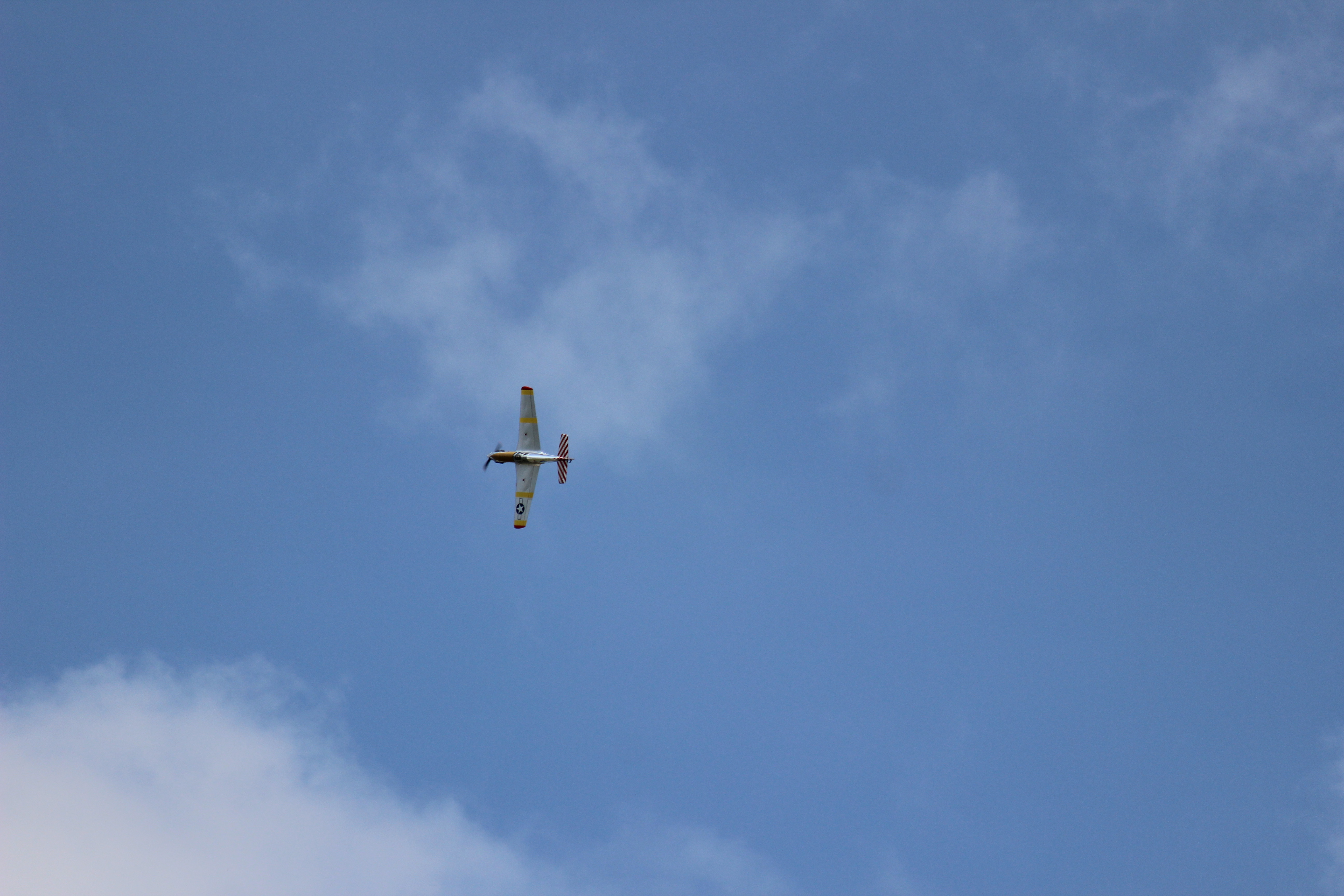 5/30/15 update- I have had time to pull all the hatches on the bottom of the wing to inspect for separated glue joints and cracked ribs and sheeting. I am happy to report that the distortion visible in this picture is most likely the covering being pulled away from the wing sheeting, I can fix this by ironing the film down on to the sheeting. A near 90 degree bank like this can generate as much as 9 g's so the weight of the airframe (28.5 Lbs. x 9)= as much as 256 lbs. It proves that the TF design with the reinforced wing and fuse is pretty tough. I did not intend to stress it this hard, what started as a wide radius turn was tightened up by flying into a strong gust of wind rolling off the nearby treeline. The turn started low below the treeline and as it turned and climbed higher the wind struck it in the belly. I noticed the turn tighten up and let off on the elevator but it was already into the gust by then. The runway conditions were almost dead calm at the time so it could have been strong thermal activity.