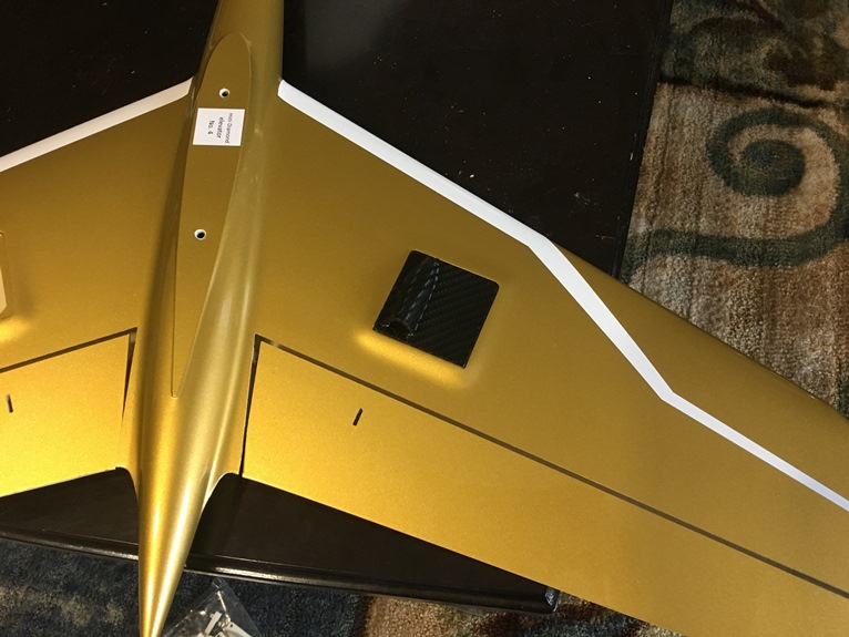 Just wanted to share something that took me by surprise unpacking this jet. AD does a great job of only shooting pictures of the Diamond (all colors except white) from the right side. Because of this, I never noticed that the servo hatches aren't body colored! They are plain white ABS plastic. On the white schemes, its blends in but will be noticeable on any other scheme. At first I was just planning to have the gold paint matched and paint the covers but that would of been risky since its ABS (I was afraid my paint would eat up the ABS). So my flying buddy suggested that I use 3M 1080 Carbon Fiber vinyl to cover them. I must say, I'm pleased with the result. For those of you that aren't familiar with this product, Its a high quality, 3D textured vinyl that is used on cars. Its hard for me to see the difference and of course, this is much more economical.