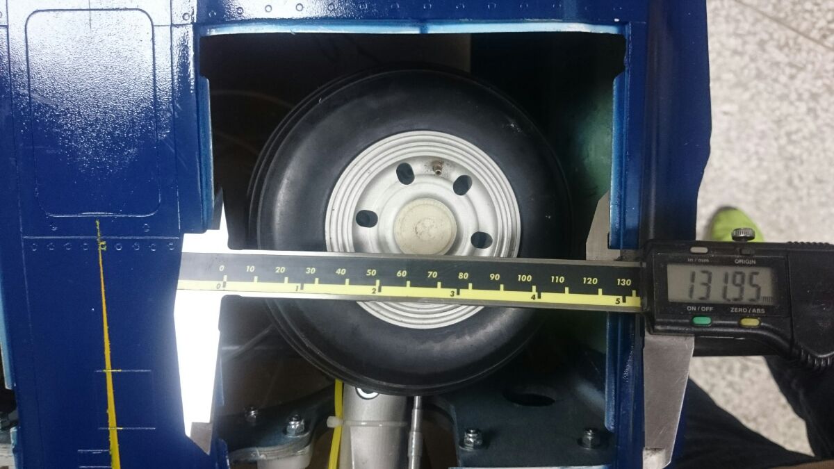 "The F-18 1/6 main door opening width is 132mm, this size is scale. The tire must be inflated to correct diameter 126mm, so the clearance on each side is only 3mm.