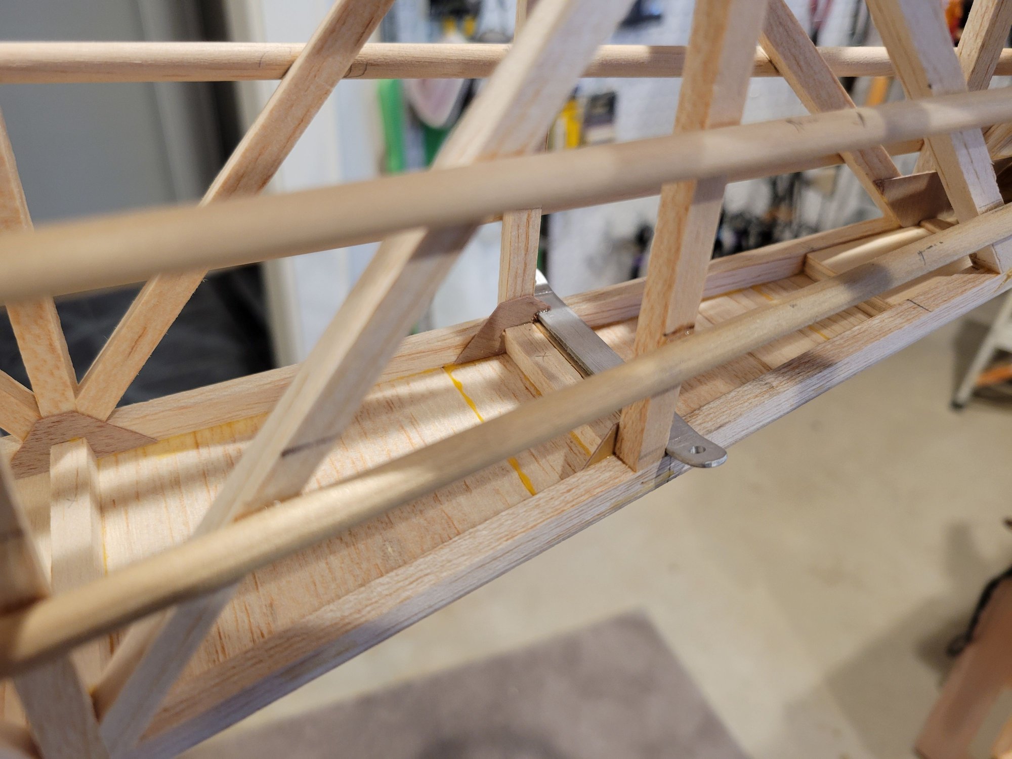Notice the small bracket protruding from the bottom of the fuselage for the tail wire support?