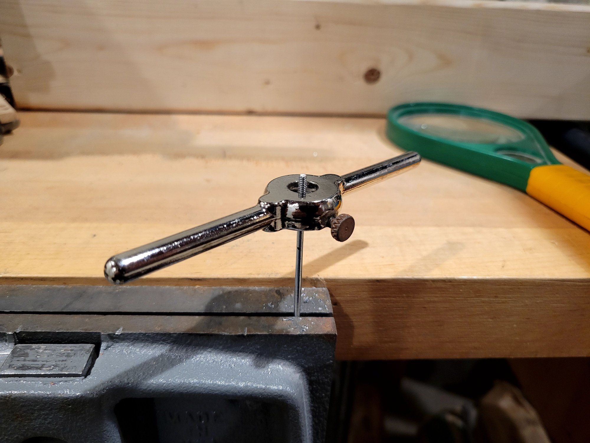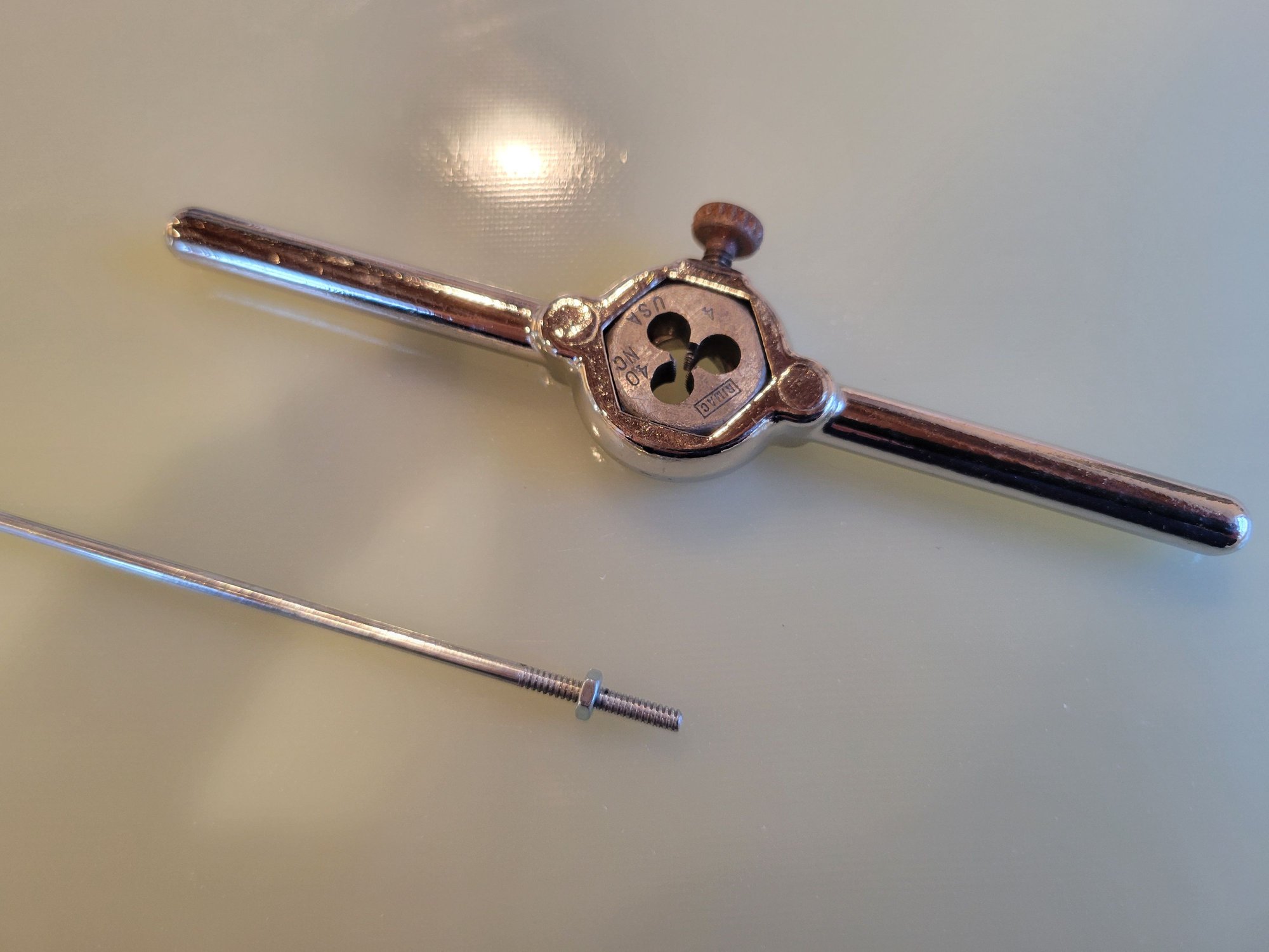 With the epoxy dry, I turned my attention to the tail support wires. Time to find out if all the bends in the support brackets are correct! I made the wires from 4-40 steel rod of which only one end is threaded. I measured and cut each rod to the correct length then cut my own threads using a 4-40 die on the opposite end. With the support rods adjusted, they give the tail the rock solid support that it desperately needed.