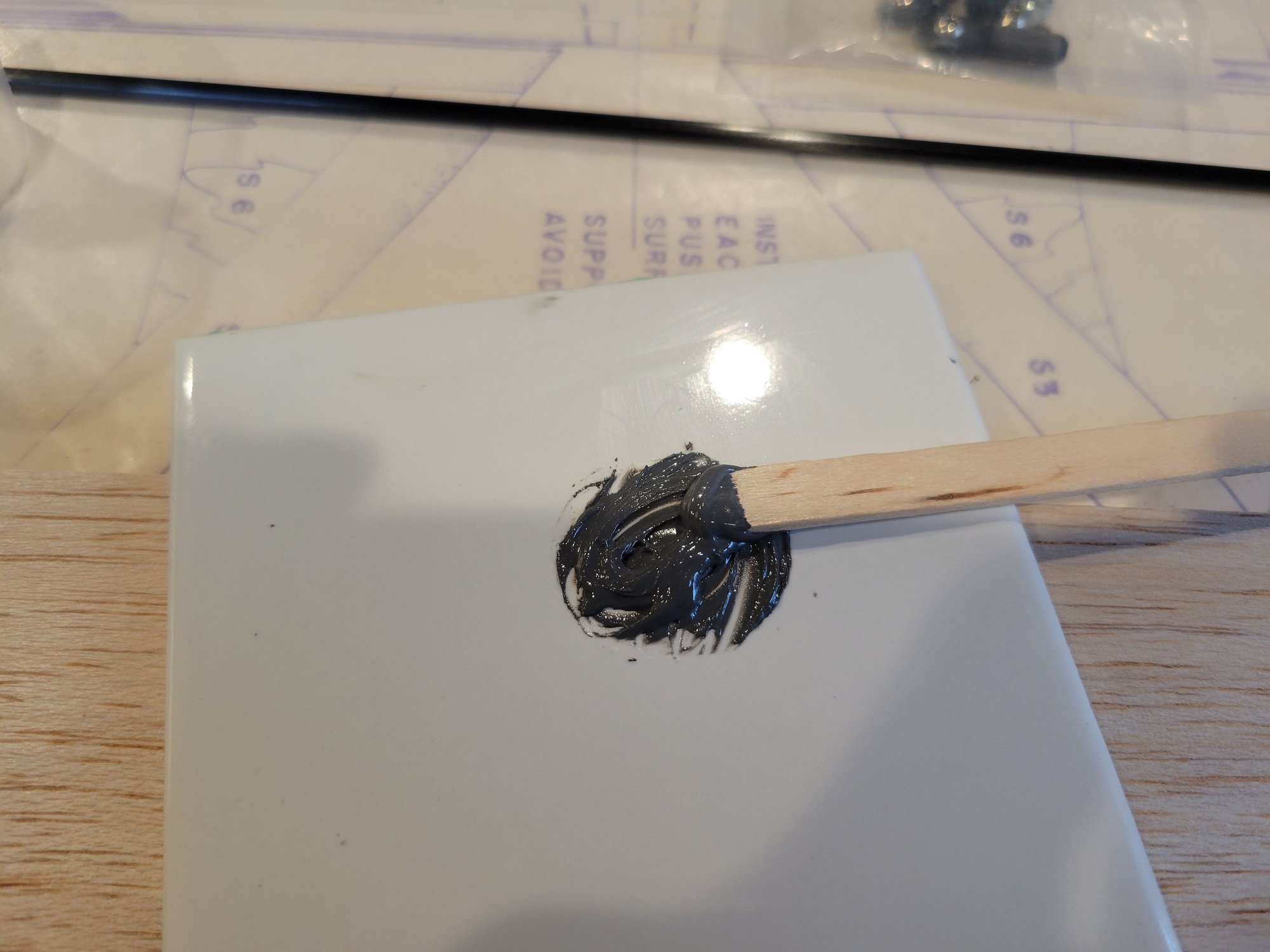 With the horns installed, it’s time to make-up the pushrods connecting the horn to its servo. I'm using carbon fiber tubing, purchased from Central Hobbies for this purpose. Titanium endpoints are inserted into each opening on the CF tube which are epoxied into place. I'm using JB weld for the epoxy. Simply squeeze out equal proportions of part A and B and mix thoroughly.