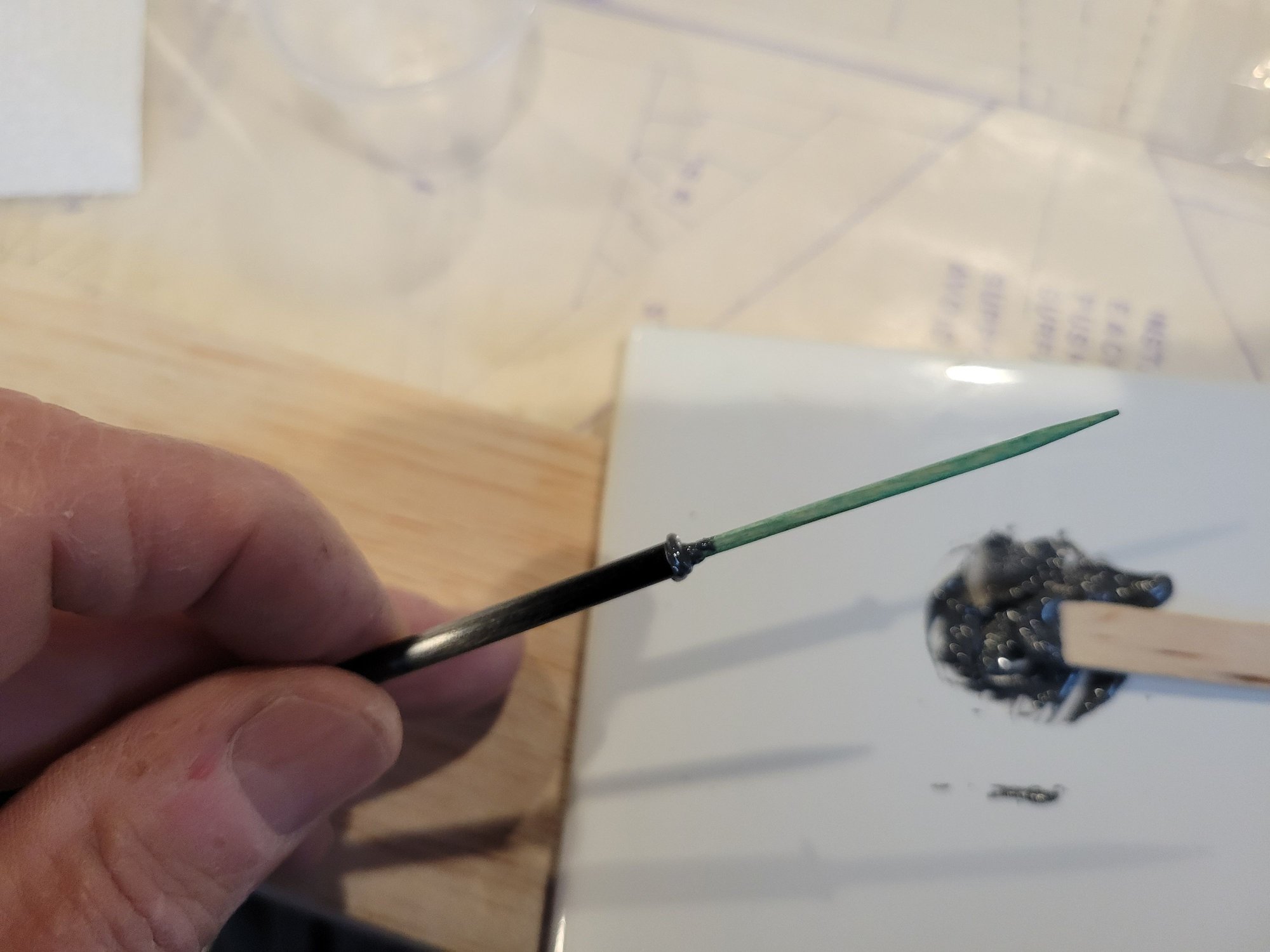 I cut a slot for the horn to slip into. It is epoxied and pegged into place using toothpicks.