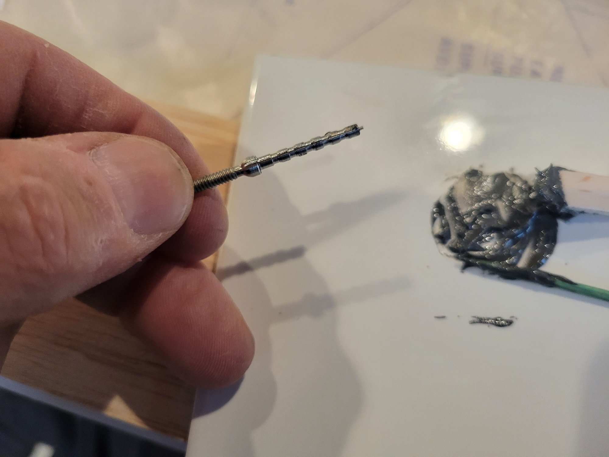 This is the part that gets epoxied into the CF tube. One end is barbed and the other side is threaded (4-40).