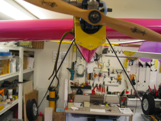 Chuck, you're right about the "goo". Even with the exaust outlet pointed at 45 degrees away from the fuse and wing it the goo still covers the top of the wing. I think I'll try and find some silicone tubing to fit the muffler stinger and extend it a couple inches.