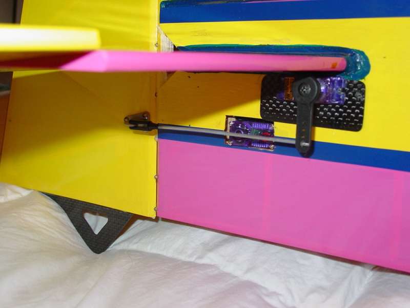 Another tip you can see in pix is a very small plastic Kraft Hayes clevis and pushrod, these clevises have a metal pin that snaps in so hard you need tools to remove, I have to super glue the robart ball in the horn then sand so that it is same thickness as horn body to get pin to latch. The Kraft Hayes music wire is also exceptionally ridgid as compared to dubro or sullivan IMHO.