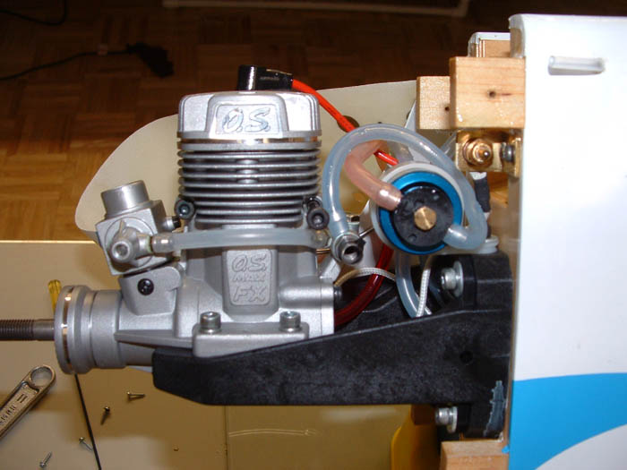 Where did you mount your fuel tank and are you having any problems with excessive flooding of your Saito 100? I've tried both: a perry pump and no pump at all and the fuel is just filling the engine up! I'm getting frustrated and seriously considering mounting the 100 right side up.