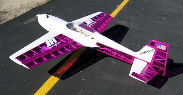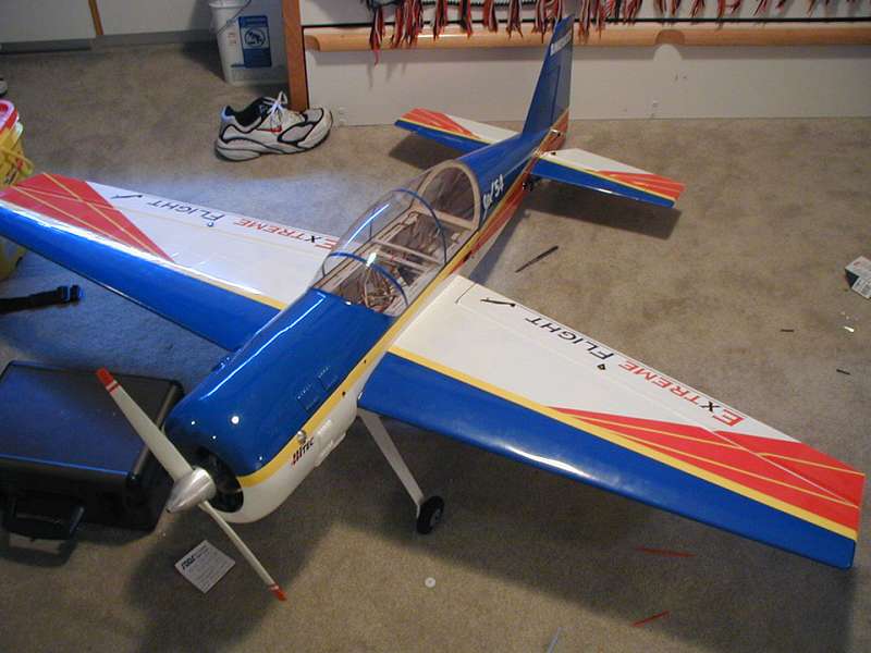 I don't have any neat action pics yet, but this is my favorite. SebArt Funtana S140 ARF from Aero-Model, Hacker C50 14XL electric motor, APC 22-12E prop. JR guidance. This is really a fun model!
