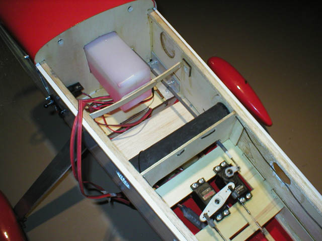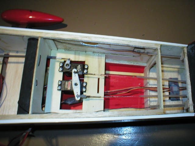 Hitec digitals all around, 1 on the elevator with a MK type bell crank in the rear of the fuse.