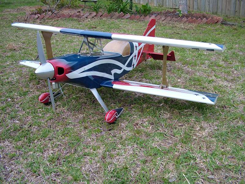Pop did all the building, and I did all the graphics. The fuselage is bustin' out in automotive paint complete with a finish that would rival some exotic cars. The wings are of course monokote.