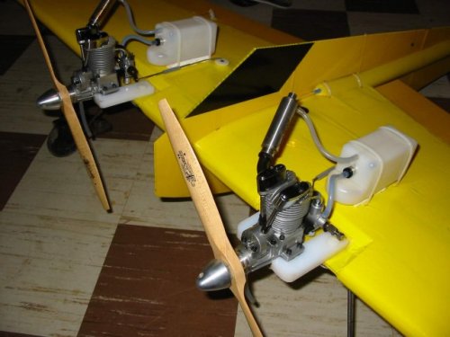 i havent heard of it yet either. I'm not sure how well it would work.....thats alot of extra weight, and with the increased wing loading, it probably wouldnt perform like we would want it to. however, there is an E-powered foamy 3D twin called the jinx i believe...I've flown a model of it on my G3 simulator and it was actually quite impressive! maybe i'll experiment a little......