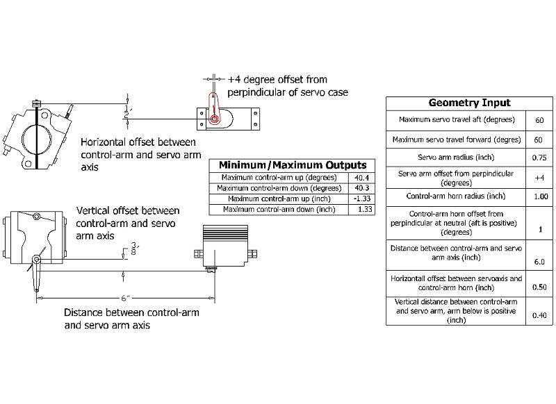 See the attached picture for the required measurements. There is one critical dimension that is not depicted this is the spanwise offset between the servo output shaft and the control arm.