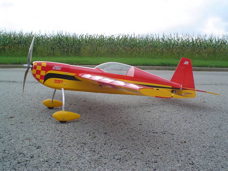 ok let me start by saying im a newer pilot and no 3D pro.. that being said heres my findings. made two 8 minute flights in windy conditions.. could fly longer on packs but didnt want to come up short on power trying to land in cross winds. i became comfortable with the extra fairly quick. it does an excellent knife edge.. very little coupling with my set up.. inverted is good with minor down elevator.. rolls are nice and sharp/loops well without snaping using moderation on elevator.. it can snap at higher speeds when maximum elevator deflection is used.. this results in around a 6 to 8 foot diameter loop/on more conservative rates it loops very well and straight. it tracks very well and holds lines good even in the windy conditions i maidened mine in. flat spins were nice inverted but didnt try them upright/stall turns aka hammerheads were very nice. harriers were nice but i did get slight wing rock and it was probally do to the wind. it hovered well with good control with little torque roll tendancies. did i say it knife edges well ? i started knife edges a minute or two into the maiden it does them very well. the hardcore guys or gals may feel its slightly underpowerd for extreme 3D but mine came in at 31 ounces so it isnt gonna rocket vertical with the 480 like it does in 18 to 25 ounce planes like ive used it in before.. vertical is respectable but not "FOAMY POWER''. i think sport pilots like myself will really like it and hardcore 3D pilots will like it but want a little more power. it flew very precise for me.. snap rolls were quick and sharp. im using hs 65s all around so it helps with response and crispness during aerobatics. first thing im doing is adding a tail wheel but that will be about it for now. very pleased with first two flights.