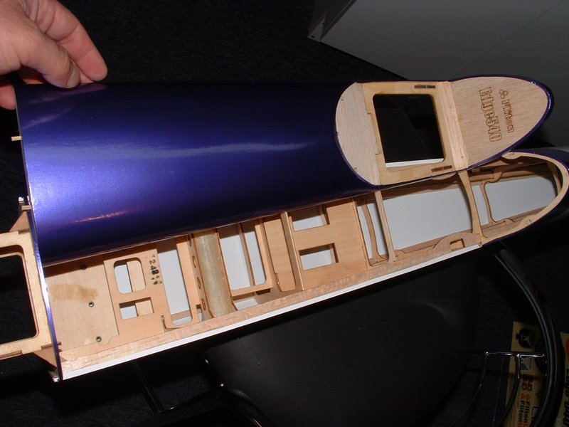 The canopy also needs to be cut. The cut lines were not as prodominent as I would have prefered them. But I rough cut the sides and then ended up cleaning it up a bit while it was on the fuse. The instructions call for the user to screw it to the fuse hatch. I choose to glue it. This is just a personal preference of mine.