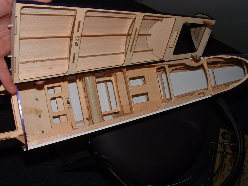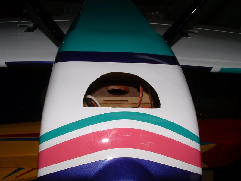 The test plane had 3.2 oz of servos in the tail and mine only has 2.6. I've got my rudder servo up front on a pull-pull. I think Fliton needs to take this one back to the drawing board if they are going to tout it as an "easy electric conversion" It's really designed to balance with a glow engine and the servos up front. You start messing with that and you run into problems. My only hope now is to go through the tail with an Exacto and a drill. I'll still get a bigger brushless motor than the one I have now. Might as well convert some of that dead weight into something useful.