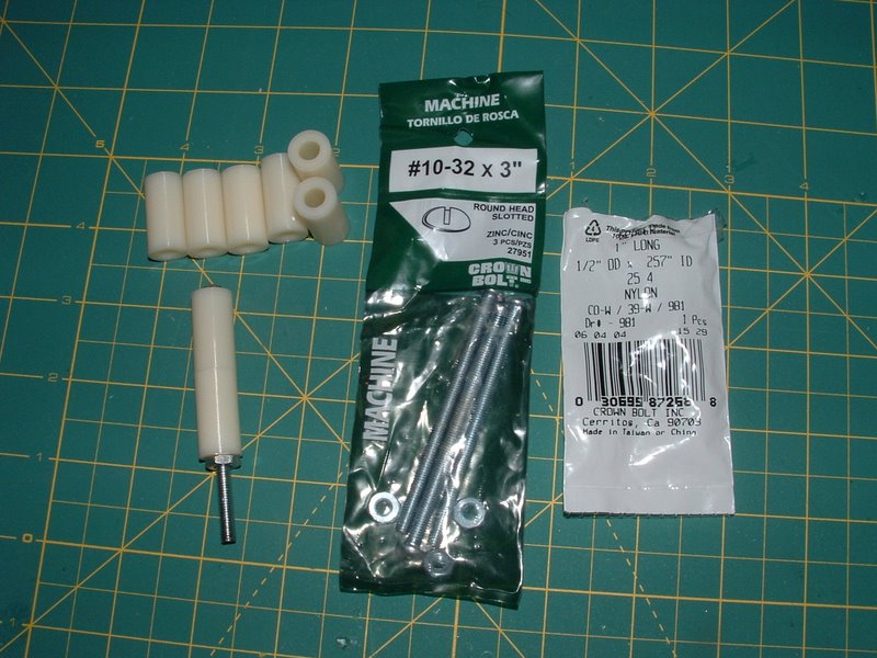 Using the X mount supplied with the motor, I outlined where the holes needed to be drilled. Now there are a couple of options available for mounting the motor. You could use an Aluminum mount from Atlantahobby or espritmodel.com. They are very convenient and come in different sizes. However, they are a bit pricey starting at $30.00. I have started using plastic standoffs when I can. I obtained these from Home Depot and they come in various sizes and diameters. Since the motor needed to be spaced 2" from the motor box to the rear of the X mount, I picked up 8 1" stand offs to form a solid 2" length. I also used some 3" bolts to reach from the X mount into the motor box. You could easily get away with 2.5" bolts, but they were out of them when I went. Just cut off the excess if you need too.