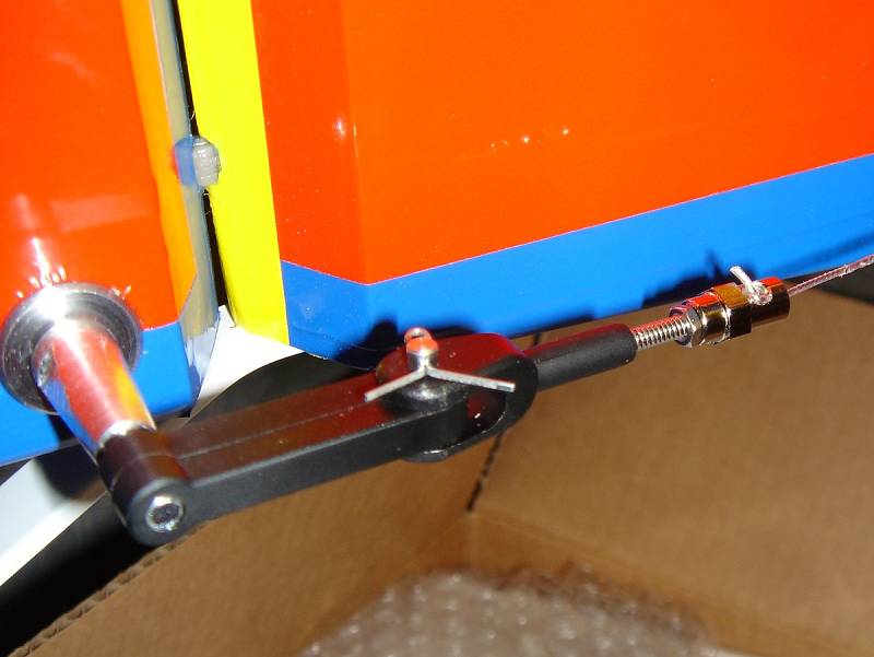Arm on the servo has to be the same width as the total width of the rudder horns attach points - if rudder horn is wider itself, screw the attachement points inwards - do not glue or loctite them.
