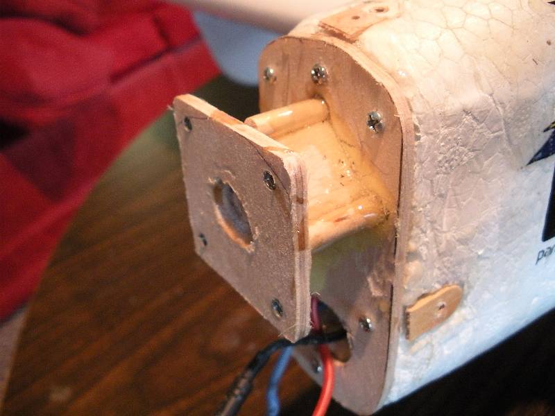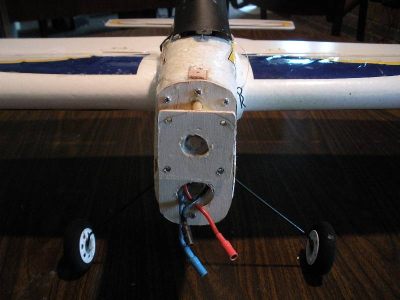 Here is an outrunner conversion on my Typhoon. Ijust used some scrap plywood and balsa sticks Ihad laying around.