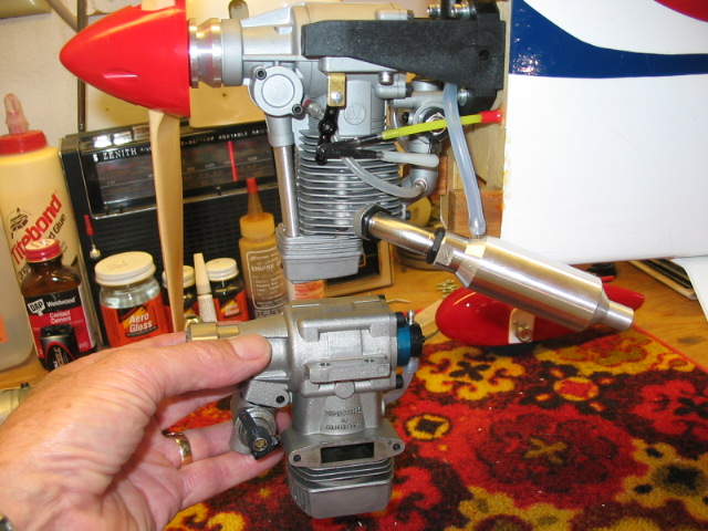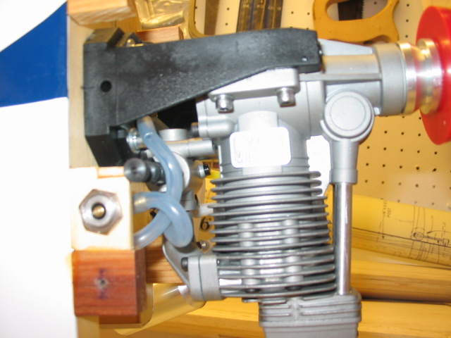 While installing the new Magnum (it fit perfectly into the G.61 bolt-holes) I gave quite a bit of thought to the less-than-ideal fuel tank location. As most of you are aware and have commented on, the tank it too high in relation to the inverted engine carburetor. Well, I decided to leave the fuel tank in the stock position and give it a try, and planned to move the tank lower if I couldn't get a consistant needle settings, etc. Well, it appears moving the tank won't be necessary. The Magnum runs so good, it's just incredible.