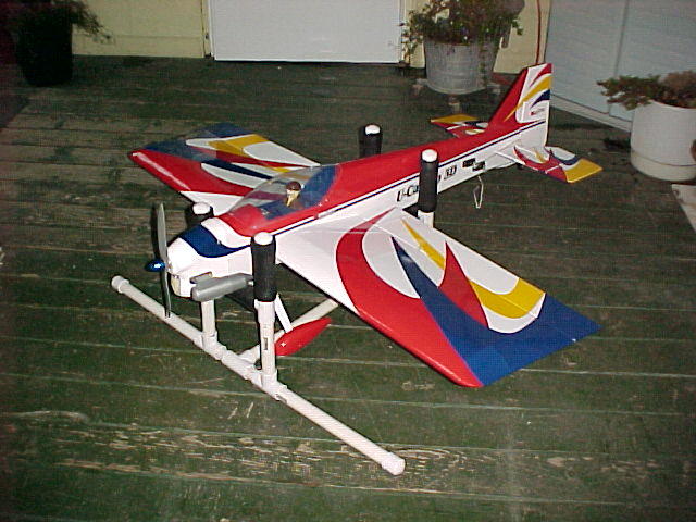 Maidened my UCD 46 today and over all I can't say I'm that impressed. It flies like a very lightly loaded airplane, and that's about it. After about 6 flights I'm slowly ratcheting up the stress, and it seems to be taking it all very well. Very easy to hover. Needs more right thrust. Doesn't do harriers all that well, even with spoilerons up. And what's up with the wicked coupling in knife edge??? Maybe a cg change? It's exactly 5.5 inches back. I spent about a day tightening the covering, and it still drums like it's going to explode at any moment! (reminds you that if you go too fast it will!!) Forget the recommended throws and swing 'em as far as possible, it might almost be enough. Not that I'm unhappy with the airplane, it flew almost hands off from the get-go, lands at a crawl, no bad habits (except the coupling) and is extremely honest. 5.5 lbs Saito 72