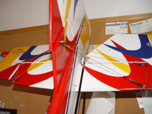 Everything needed to do what I did comes in Sullivan's flying wire kit. I don't know the part number. The kit was 16 bucks at my LHS. It also includes steel wire, but I didn't feel like putting a potential source of interference on the tail.