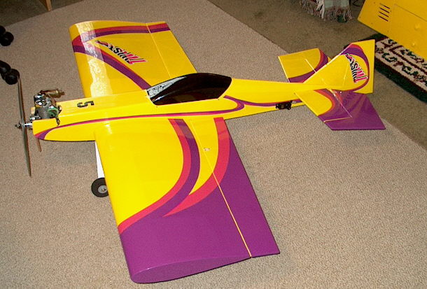 All I need is to put the spinner on and give it a coat of wax..........[8D]Oh, That's a Saito 72 under the hood with a 13x4w APC prop. I can hear Tim Taylor grunting now..........