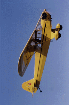 Sorry guys, But I do not think that is a Piper J3, It looks like one! I have a Goldberg J3 full wing. I have a 60 OS FS on it , it does tail slides, knife edge, And will hover for a short time(need more motor) It is about 14 years old and cant bring myself to re-powering it. I do believe that the right pilot could make a J3 do allot! It would still have problems with some maneuvers with that high wing and the flat bottom.