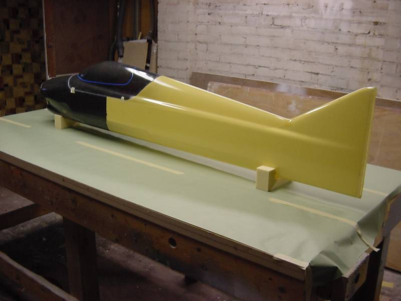 Okay, here's pics of the first fuselage out of the molds. It's not a pretty white one like you get in todays kits, but you can see what materials were used and where. I have a fellow who kits classic/ vintage pattern kits giving me info on how he makes white fuselages, so hopefully the future layups will look better.