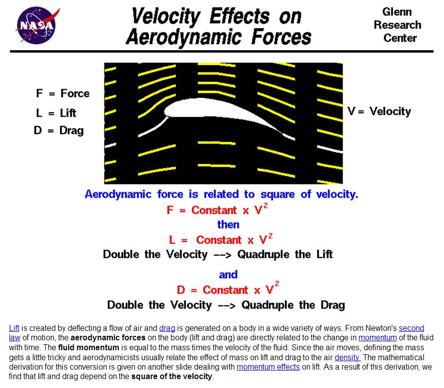 "lift is porportional to the square of the air velocity"