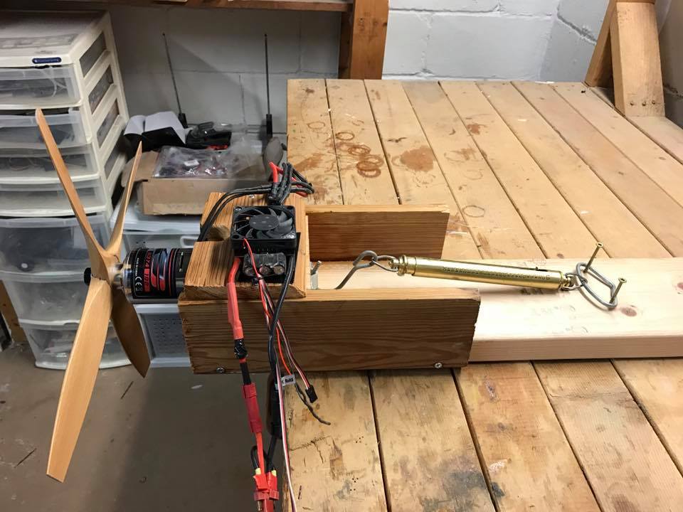 The only question now is if the 12 inch pitch and RPM that your pack voltage turns it at is a good match up for pitch speed to the speed the model will need. You want the prop to un-stall at a speed low enough that it will occur during the take off acceleration. But not TOO early or you might run out of top end pitch speed. I'm not familiar with the electric propulsion software out there. But one or more of these analysis and prediction packages might be able to tell you that sort of information. I do believe that most of them also will give you a good estimation on the stall speed. And given the cost and time in a project of this sort it might be worth looking into buying Motocalc or similar.