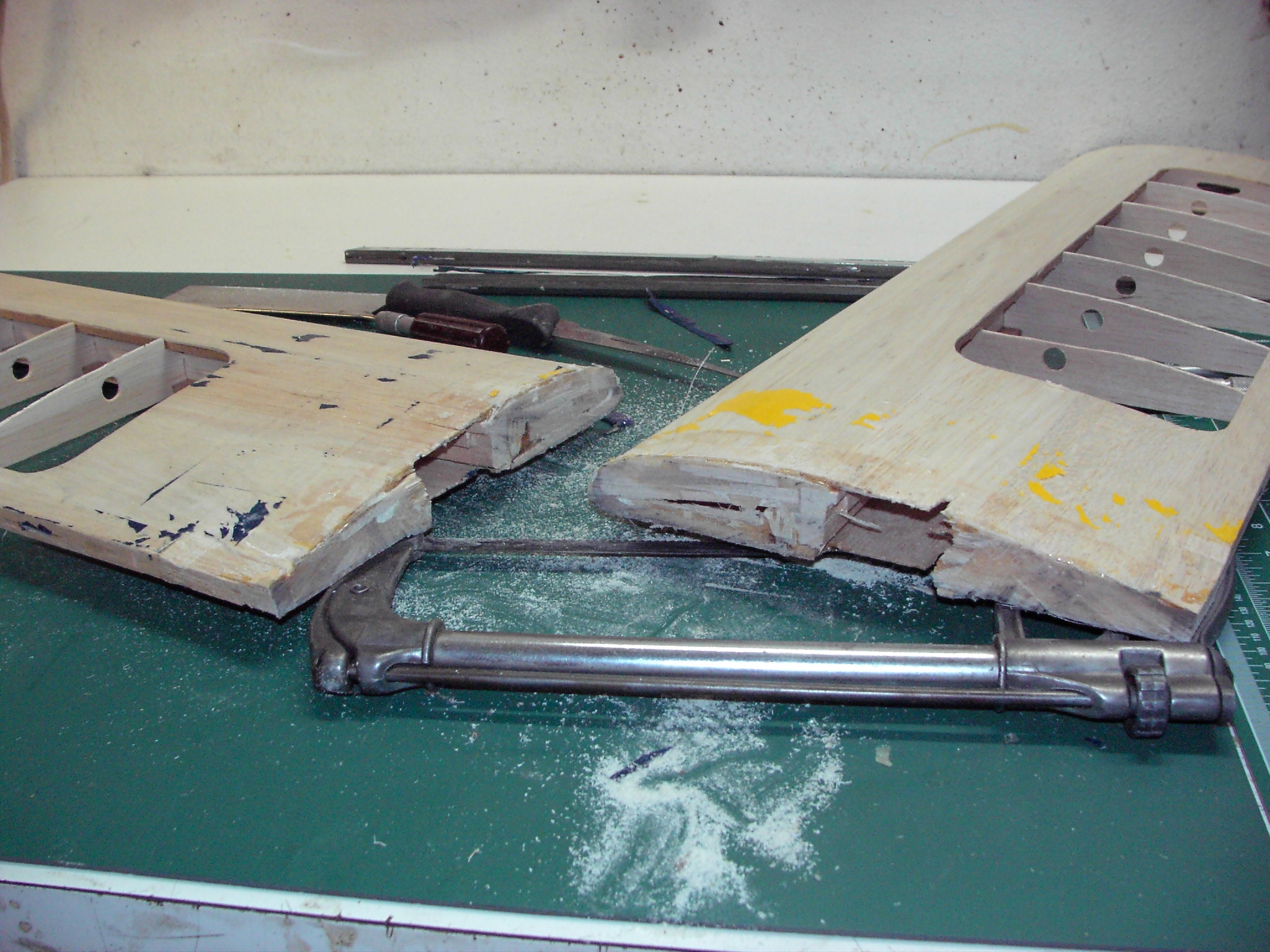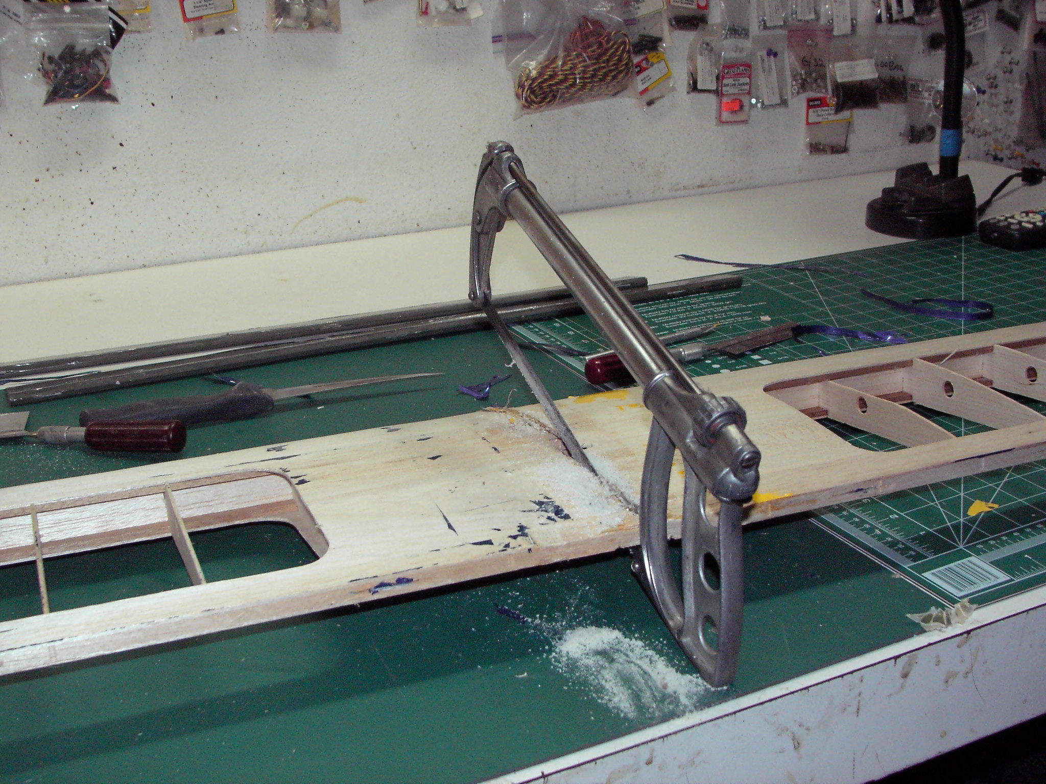 Here are some random photos during the bash of this last one with the hacksaw (the trainer is a Midwest Aerostar trainer mostly stock except the wing.
