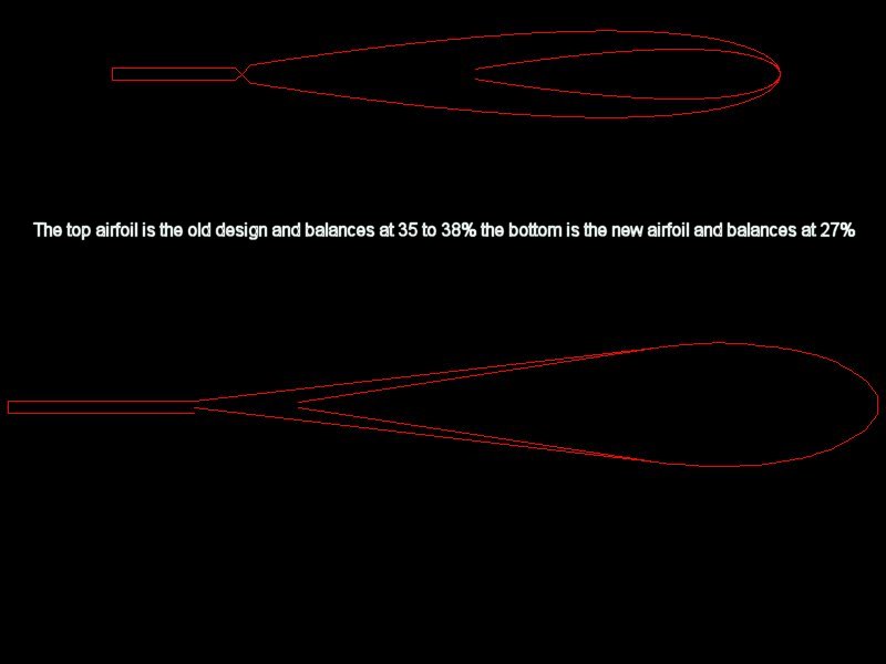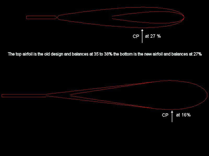 My question is what has drastically changed my balance point? Is it the airfoil? Is it that the tail might be to small for the much bigger wing area? If it is realated to the tail could the ralation ship of stab size compared to elevator size have anything to do with it?