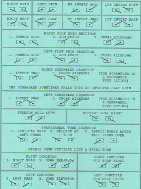 Ed Moorman, here is a puzzle for you. Some of the fun fly planes like the Pizazz will do it, others will not. At altitude, stall, full right rudder/idle, full up/left aileron. Start slowly crossing the aileron to the right and adding throttle. Develops into a beautiful stationary INVERTED flat spin. Why inverted when you have full up elevator? Rudder and engine torque maybe?