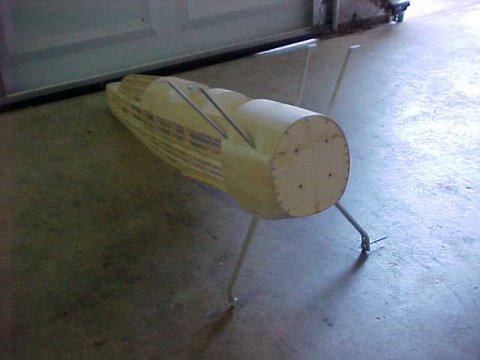 The wings and tail feathers are framed and covered and the fuselage is ready to receive the radio gear and engine.