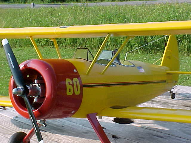 The Stearman now has the original OS .90 4-stroke. Once it is airborne it goes too fast and I cruise at less than full throttle. Maybe I should put in my OS 1.20 4-stroke or better,yet, my OS 1.08 2-stroke? Had the Dave Platt Jungmeister bipe that really flew well with the OS 1.08. It was no where near the wing loading of the Stearman.